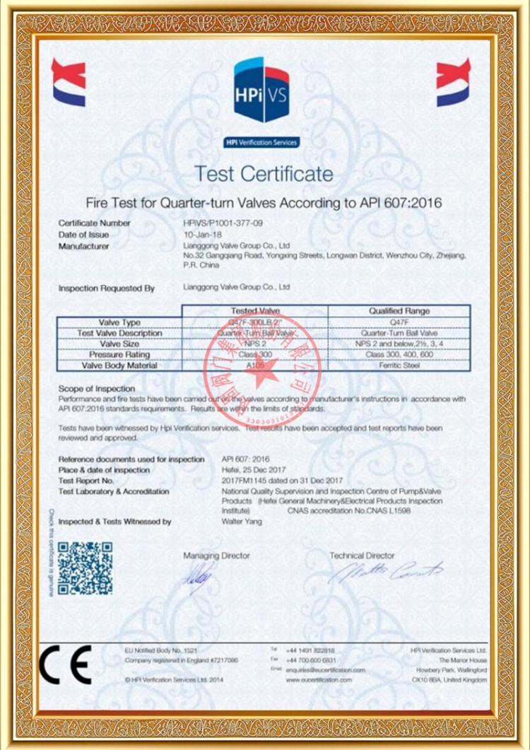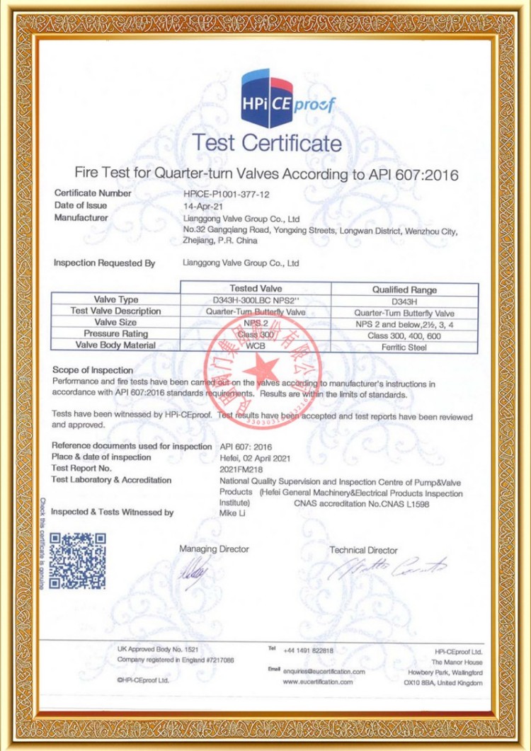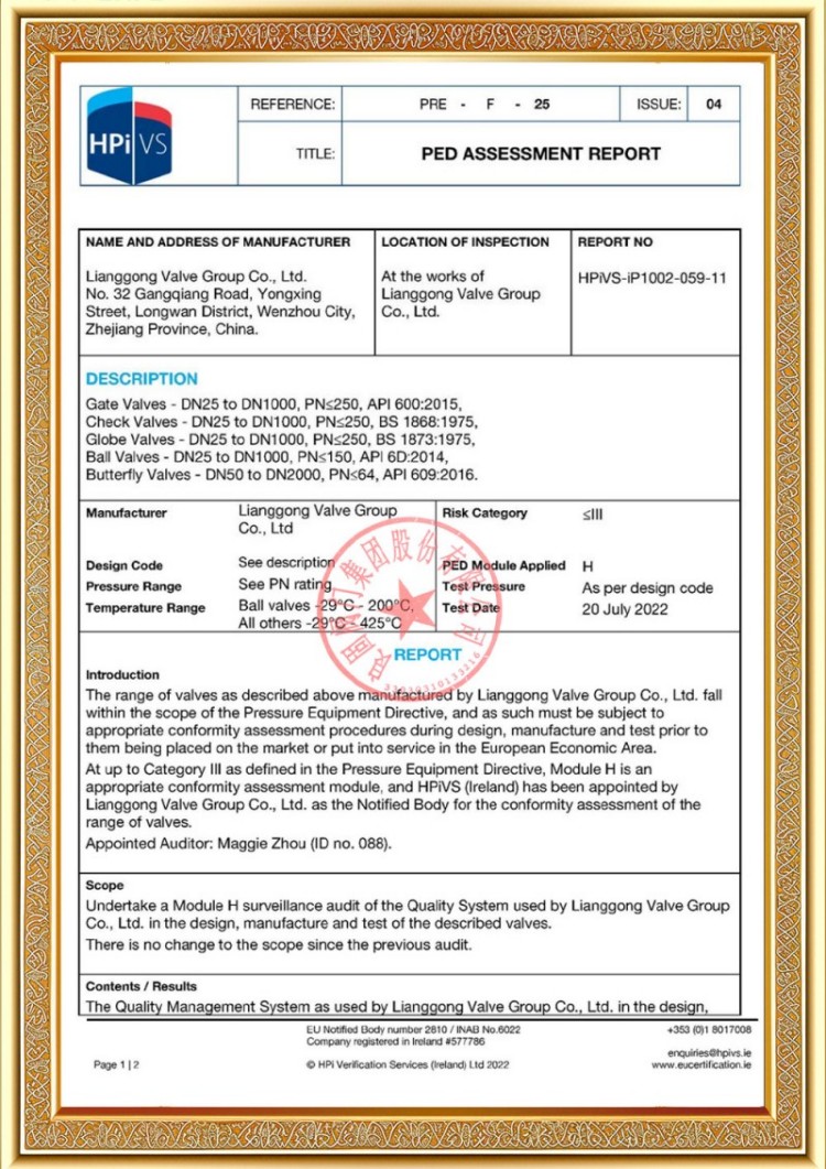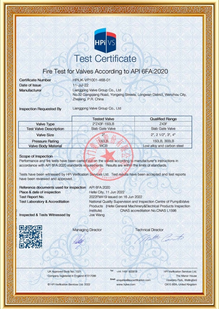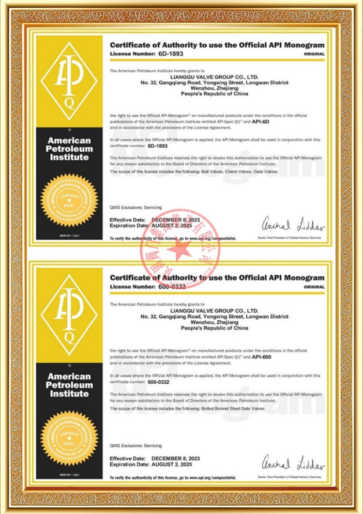 Công ty chúng tôi có nhiều giấy phép sản xuất van đường ống áp lực khác nhau và các sản phẩm của chúng tôi đã vượt qua TS A1, ISO 9001, ISO 14001, ISO 45001, API 6D, API 600, APL 609, CE/PED, API 607, API 6FA, ISO 15848-1 và các chứng chỉ sản phẩm và hệ thống EAC. Chúng tôi cũng có giấy chứng nhận bằng sáng chế cho các loại van khác nhau như van bi, van bướm, van an toàn và van chặn.